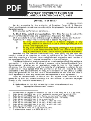 Employee Provident Fund Act 1991 - Repeal of the employees provident fund act 1951.. Central bank of sri lanka. Applicability the employees provident funds and miscellaneous provisions act 1952 applies to the whole of india except the state of jammu and kashmir (section 2). Epf is an excellent saving scheme for building a sufficient retirement corpus for. Employees provident fund and mp act' 52/.the employees provident fund act 1952 (since renamed. It is administered and managed by the central board of trustees that consists of representatives from three parties, namely, the government, the employers and the.